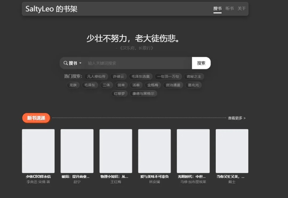 SaltyLeo的书架SaltyLeo的书架是整合全球电子书资源的智能阅读平台,提供千万级正版与开源书籍的即时检索服务。网址:https://tstrs.me/search平台:网站&在线应用简介该平台采用分布式存储架构构建电子书数据库,收录包括Springer、IEEE等学术出版机构的开放获取资源,以及Pro...