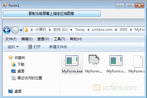 C#复制当前屏幕上指定区域图像。运行效果如演示截图所示。最核心的两行代码如下所示: