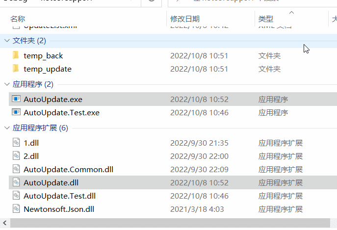 写代码还是要尽量的保证通用性,以便以后需要的时候可以拿来稍微改改甚至直接使用。所以在这里我们将自动更新的程序抽象出来,即对于客户端来说,它只包含三个文件(Autoupdate.dll、Autoupdate.exe、updateList.xml,如果是.NET Framework的话,其实是没有Autoupdate.dll文件的,就一个exe就足够了。这也是我为什么一直不用NET Core来写Winform程序的原因之一);然后将这三个文件放到主程序的目录中即可。
