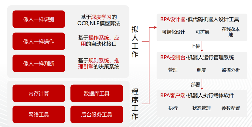 2. 会计大数据分析与处理技术 会计大数据分析与处理技术是大数据技术在财务领域的应用,以实现数据赋能财务的目标推动企业业务和管理发展,其以大数据存储和计算基础技术为底层支持,以数据治理、数据采集、数据清洗、数据分析、数据可视化等技术为核心,是帮助企业高效、高质地从会计大数据中挖掘出有效信息和潜藏价值的广泛技术体系。(摘自:《财务与会计》202210期 《会计大数据分析与处理技术:助推数据赋能财务新未来》) 随着大数据时代的来临,仅仅停留在不做假账的层面显然是不够的,提供至小、至实、至真的数据特别是各种基线数据,是财经作为业务伙伴的基础。财经要充分利用“任何人都必须用数据说话”的机会,通过建立业务规则,对数据进行深度整合和分析,在助力经营管理的同时,推动建立面向未来的业务模式。这既是财经面临的新挑战,也是财经利用数据在公司管理中发挥作用的最大机遇。(来源:价值为纲:华为公司财经管理纲要) 会计大数据的分析与处理会应用在会计工作的方方面面,如经营分析、资金管控、预算管理、管会报表、数据穿透、客户信用风险管理等都是典型的业务场景; 3. 财务云 财务云是将共享服务管理模式与云计算、大数据、人工智能、物联网等新技术深度融合,与商旅、银行、税局、社交等平台实现互联互通,促进财务“新生态”的建立,为用户提供开箱即用的全方位财务数字化服务。财务云更加注重业财融合,管控与服务并重,促进管理会计落地,构建财经大数据,打造智能财务,推动财务数字化转型。 4. 流程自动化 (RPA&IPA) 机器人流程自动化(RPA)是一种应用程序,它通过模仿最终用户在电脑的手动操作方式,提供了另一种方式来使最终用户手动操作流程自动化。当下以AI能力扩展了传统RPA技术的能力边界,将RPA的发展推向了全新的IPA阶段。 相比于RPA(机器人流程自动化),基于IPA(智能流程自动化)技术的财务机器人能够在执行流程的同时进行智能判断、纠错,从而进一步提升工作效率,解放财务人员生产力。