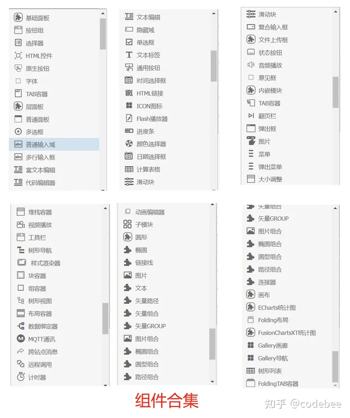 "物料":低代码引擎的核心目的之一是建设跨行业的低代码框架,而每个行业由于其应用的领域不同,使用的人员以及方法方式不同,在一些底层组件方面会有会有加大差距。比如:政府业务中会大量使用的非规则表单元素,企业应用中各个行业自有的图标体系,物联网行业大量的设备图标图片以及实时联网图。