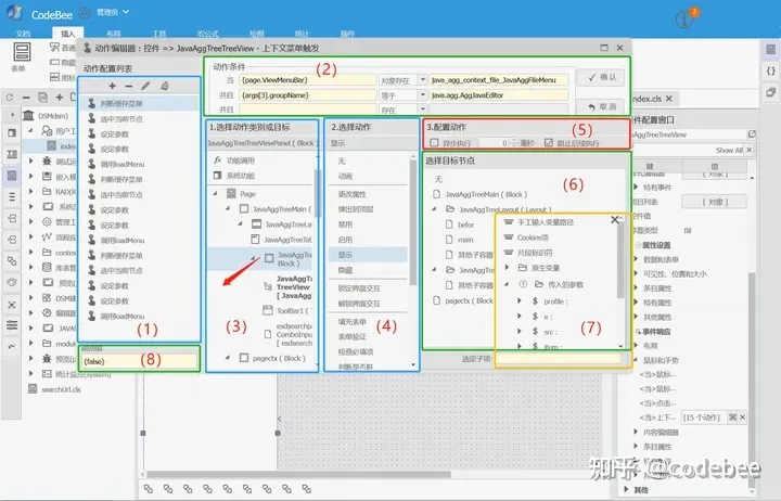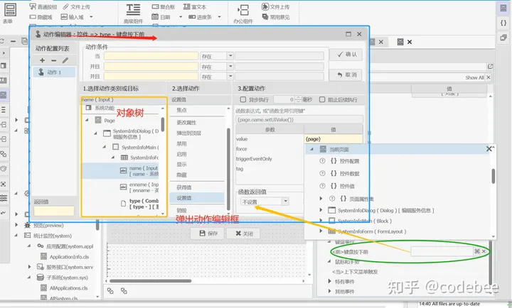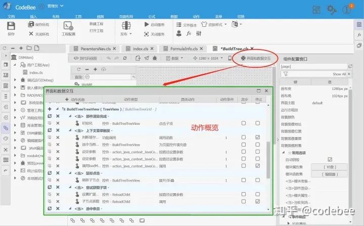 在OneCode白皮书中参数了OneCode工作原理,其中有一个章节就是允许用户将逻辑片段以及动作函数序列化为特定的JSON字符串。动作(逻辑)概览则是针对逻辑片段可视化的入口工具。打开任意页面便可以直观的将该页面的代码片段以直观的方式展现出来。并且可以直接插入,编辑事件,修改动作。同时也可以在调试期动态的中断、跳出终止等功能。