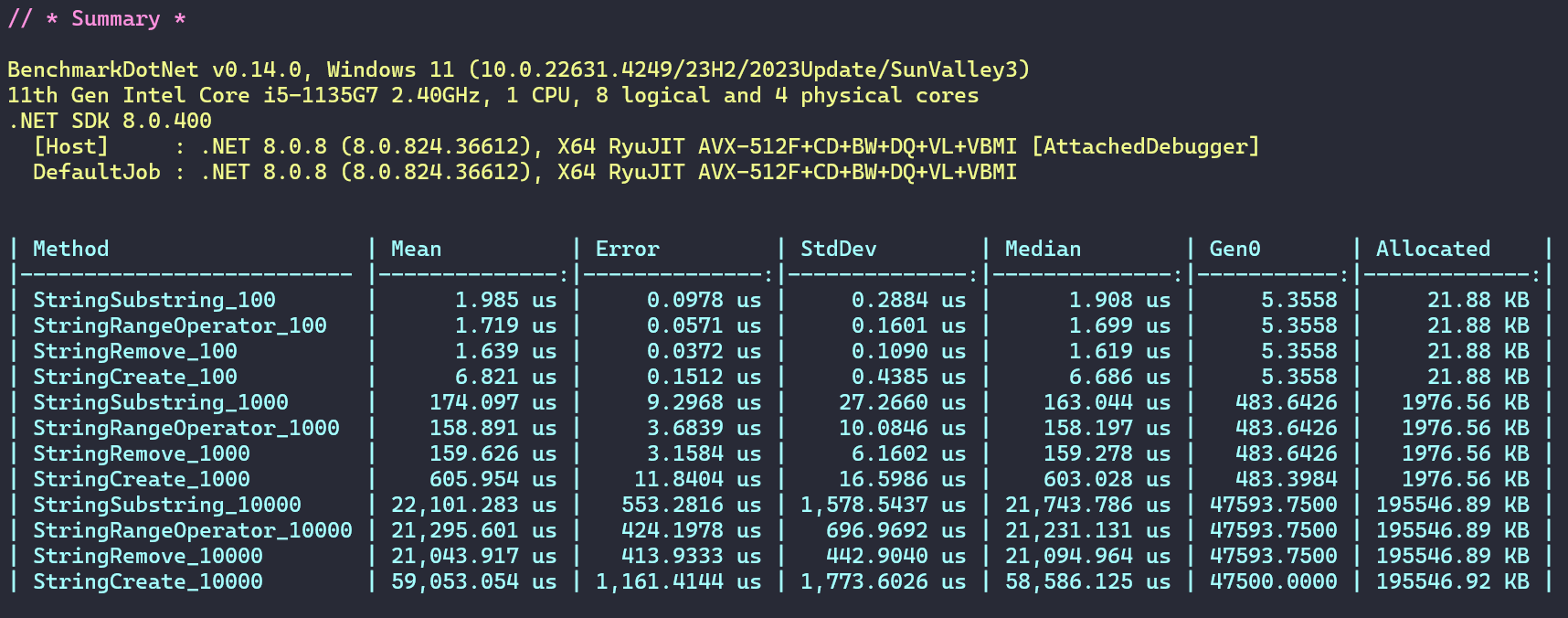 C#.net core 基础 - 删除字符串最后一个字符的七大类N种实现方式以及性能测试