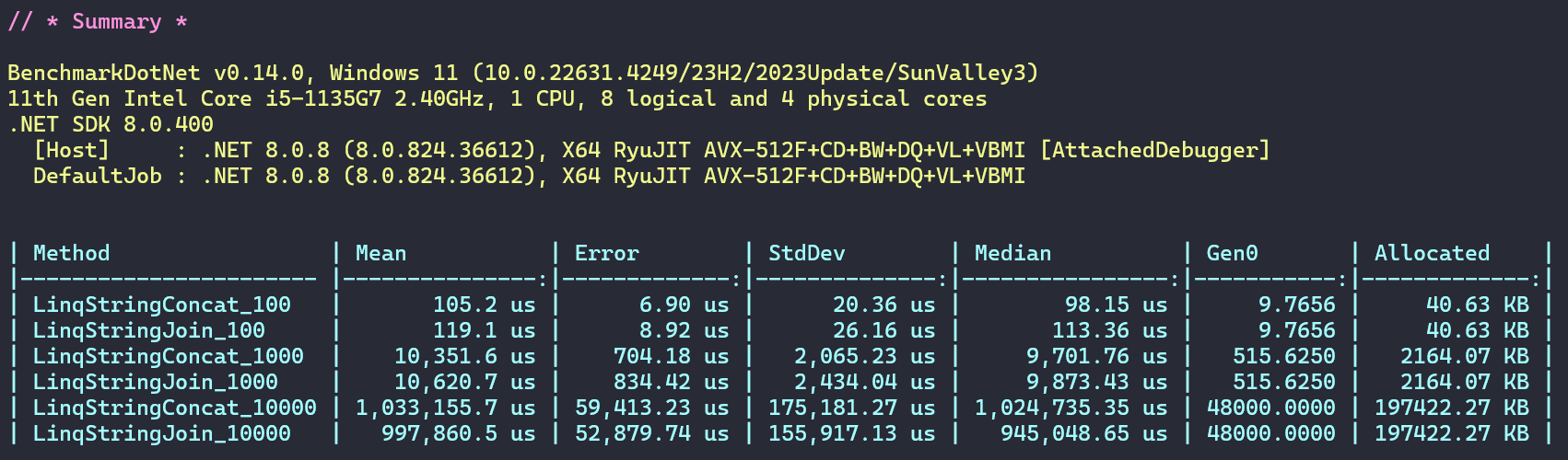 从整体来看,使用第一类字符串方式性能又高代码又简洁是最优选,而列举了那么多种方法主要目的还是熟悉一些基础方法,虽然在这个案例里不是最优解,但是说不定在其他地方就用的恰到好处。