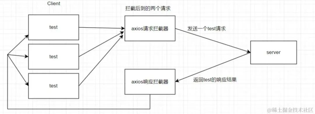 加Loading的方案不太友好,而对于同一个接口,如果传参都是一样的,一般来说都没有必要连续请求多次吧。那我们可不可以通过代码逻辑直接把完全相同的请求给拦截掉,不让它到达服务端呢?这个思路不错,我们说干就干。