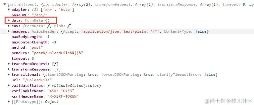 我们打印一下请求的config: