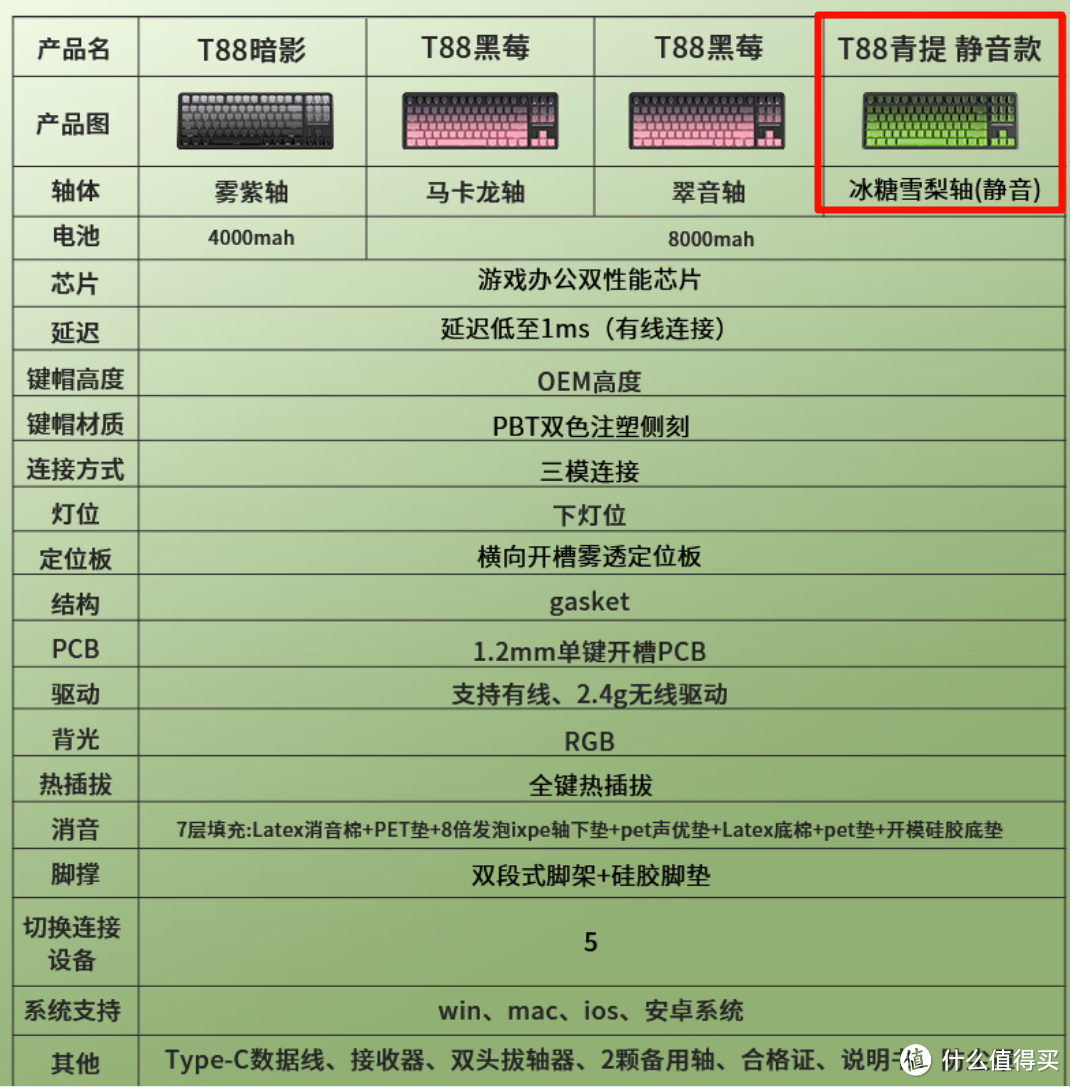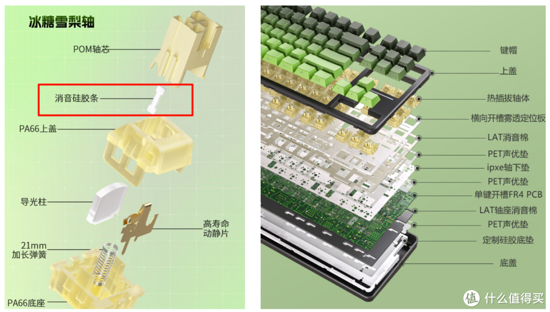 但是,只有一个轴体有这个特性,就是冰糖雪梨轴。再加上冰糖雪梨轴绑定青提绿渐变配色,所以比较尴尬。