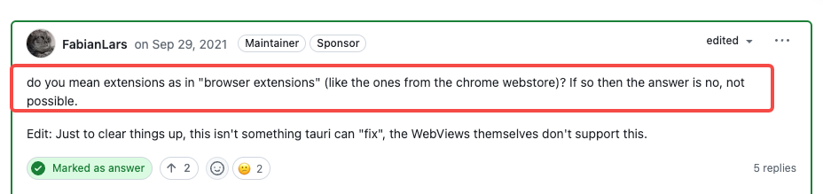 直到2024年的今天,Tauri依然还不是特别完美,目前官方主要精力是放在了2.0的开发上,对于1.x的版本维护显得力不从心,主要原因也是因为官方人少。