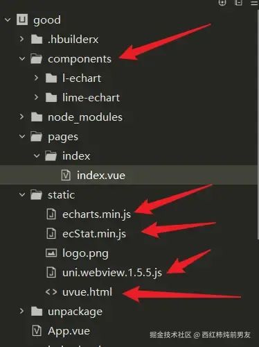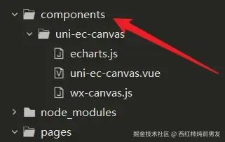 但是这里要注意一点,先建一个components文件夹,再把uni-ec-canvas放进去,具体情况你可以看下图: