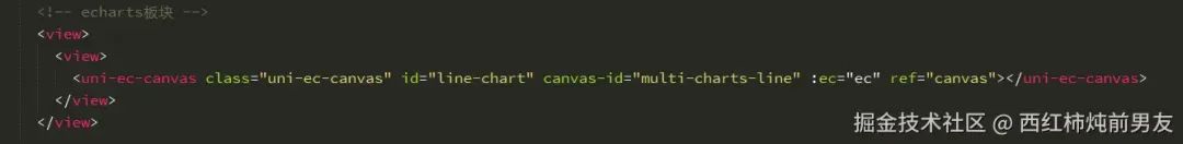 <view>        <uni-ec-canvas class="uni-ec-canvas" id="line-chart" canvas-id="multi-charts-line" :ec="ec" ref="canvas"></uni-ec-canvas>      </view>