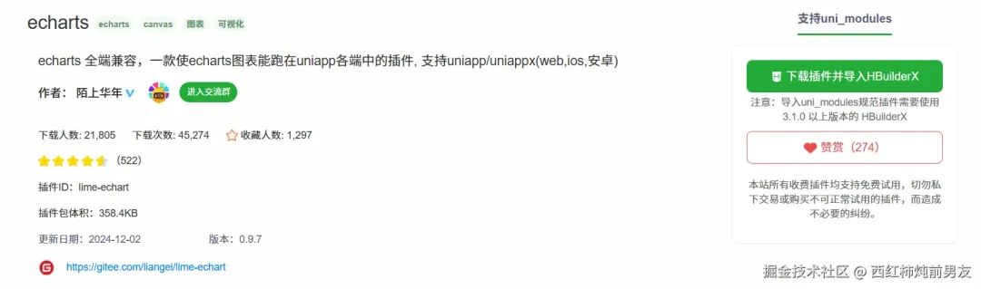 vue3生态相对来讲,加入echarts就很简单了,咱们直接用这一款。有的人叫它“「lime-echart」",其实就是咱们PC的echarts。