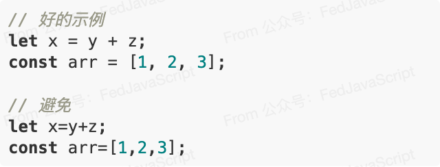 操作符前后添加空格,提高代码可读性。