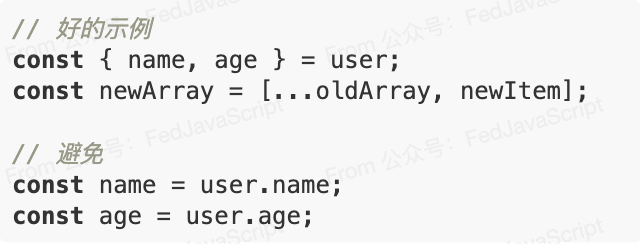 优先使用 const,其次是 let,避免使用 var。确保变量在使用前已声明。