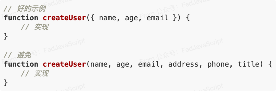 函数应该短小精悍,遵循单一职责原则。参数不应超过3个,超过时考虑使用对象参数。