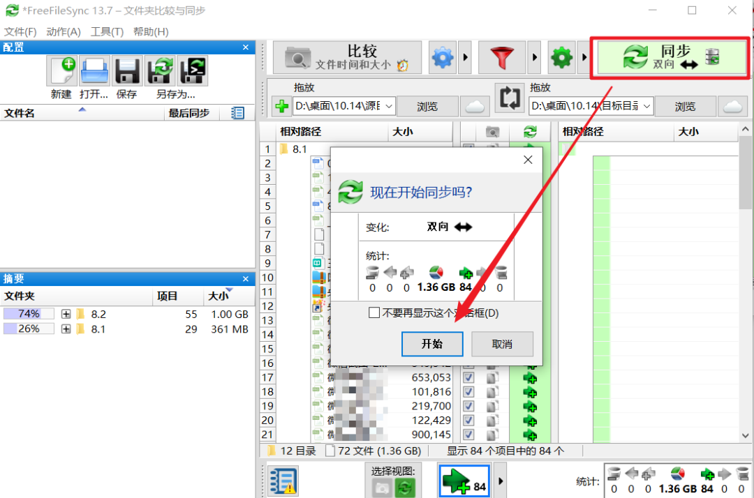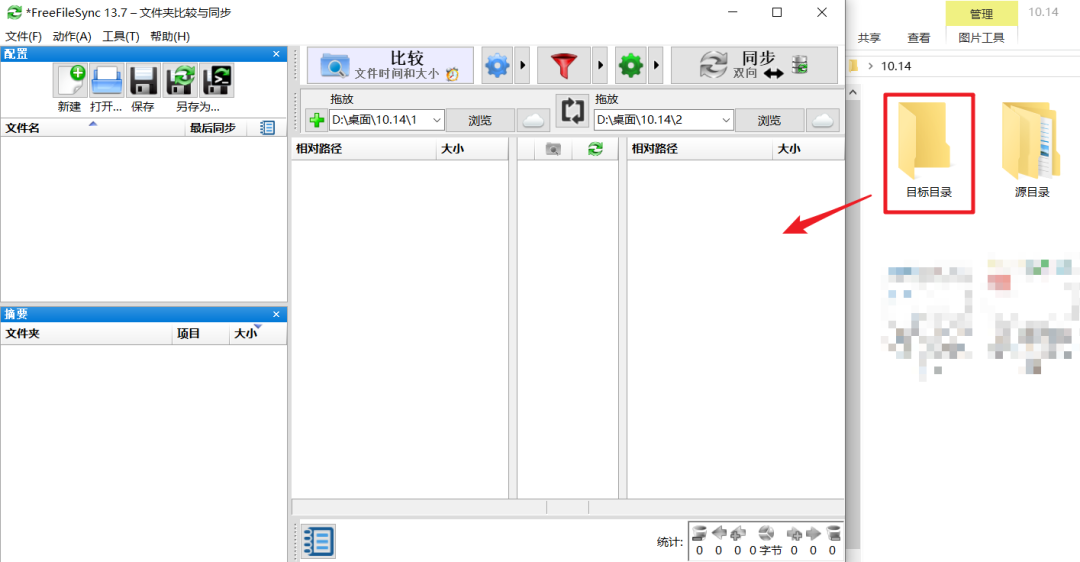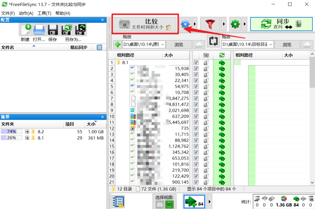在默认情况下,FreeFileSync 是通过文件修改时间和大小来比较文件的差异,以此确定新旧目标以及同步方向。