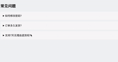 用<details>实现常见问题列表,点击问题展开答案,简洁高效: