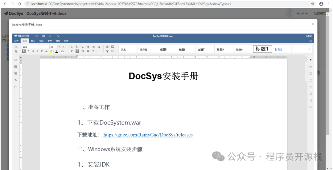 项目源码源码托管在 GitHub 和 Gitee 上,便于开发者下载、学习和二次开发。 GitHub:https://github.com/RainyGao-GitHub/DocSys/releases Gitee :https://gitee.com/RainyGao/DocSys 项目包含完整的安装包、升级包和部署说明,适合不同阶段的开发者使用: