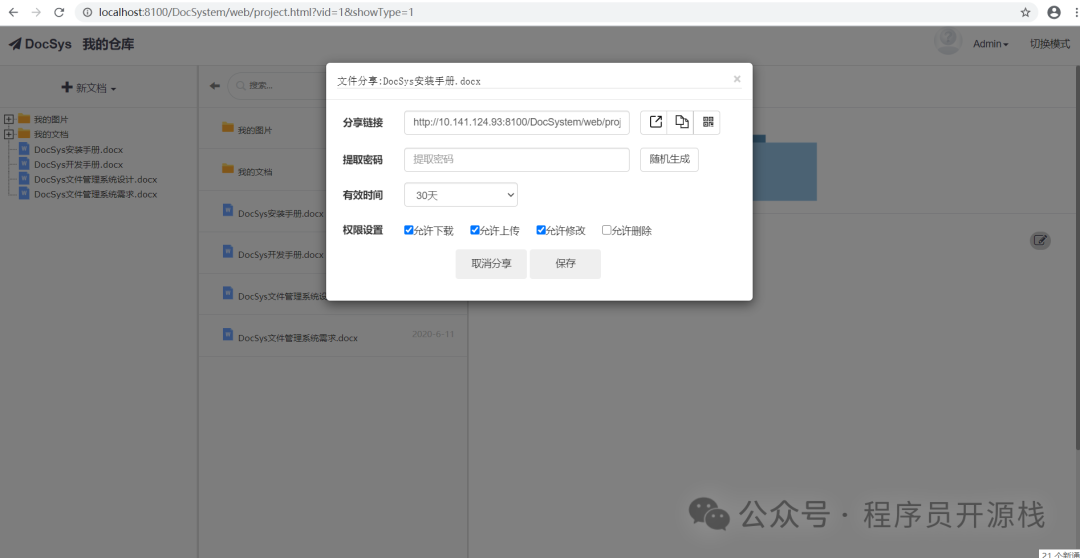 文件分享支持文件和目录分享,支持访问权限设置和密码访问控制