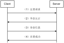 (2) Server收到注册请求报文后,根据配置决定是否对该Client进行身份认证。如果配置为不认证,则直接注册Client信息并向Client发送注册成功响应,身份认证步骤省略;如果配置为认证,Server向Client回应身份认证请求,并指明需要的认证方法(CHAP认证时还返回一个随机数)。