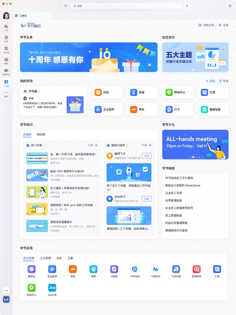• 流程审批、文档协作、IM、日程整合一体