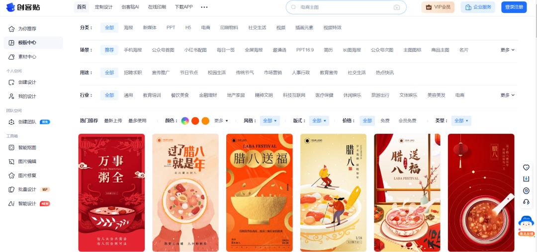 小慕强推!这款作图神器我用了4年,日常的分享插图和海报都靠它了!网站内有各类型、不同尺寸的图片模版可供使用,还有风格不同的PPT模版,打工人必备作图神器!