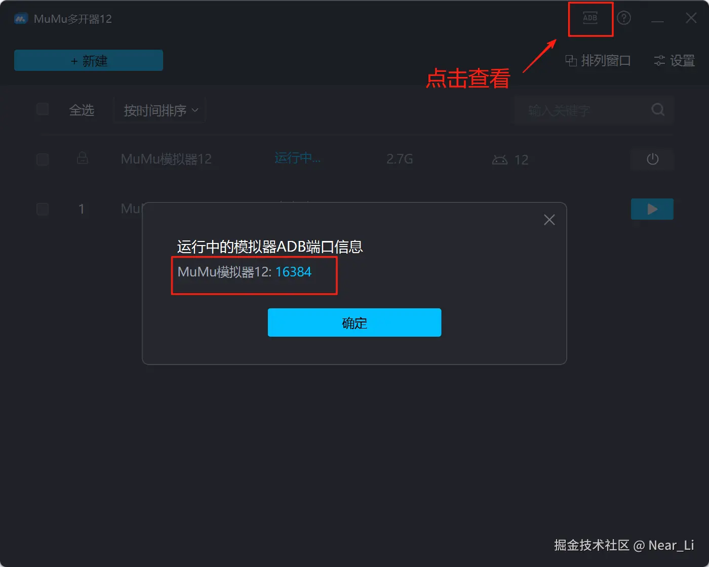 1、启动 mumu 模拟器,并打开 mumu 多开工具查看 adb 端口号