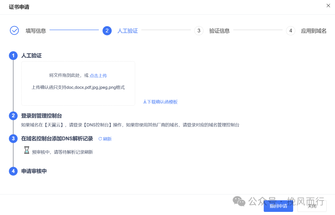 • • 人工验证,需要下载的确认函,由服务器拥有负责人填写相关信息并盖章上传