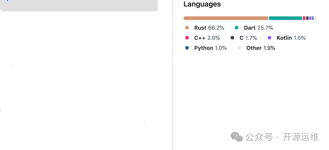 RustDesk 使用了 Rust 语言作为核心,结合 Flutter 来构建友好的跨平台用户界面,还使用了 C++ 和其他技术来实现底层功能。