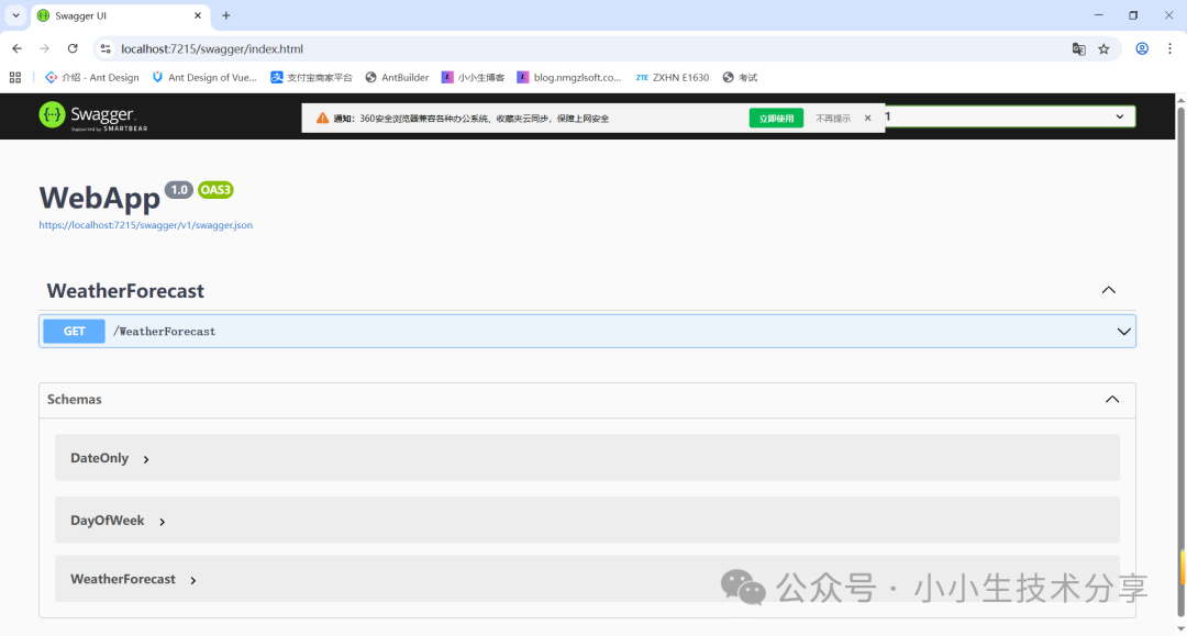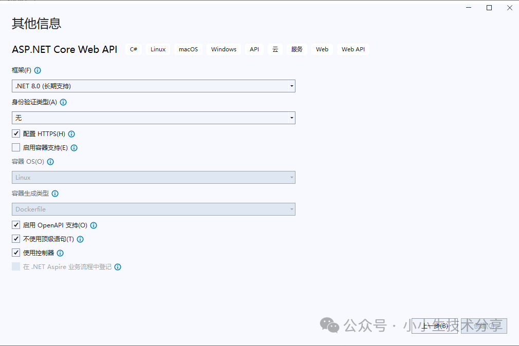 Visual Studio 2022 创建一个基于.NET 8.0 WebApi项目。