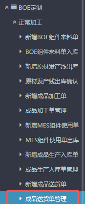 1.进入ERP系统之后,点击“BOE定制”,点开“正常加工”,找到“新增成品送货单”。