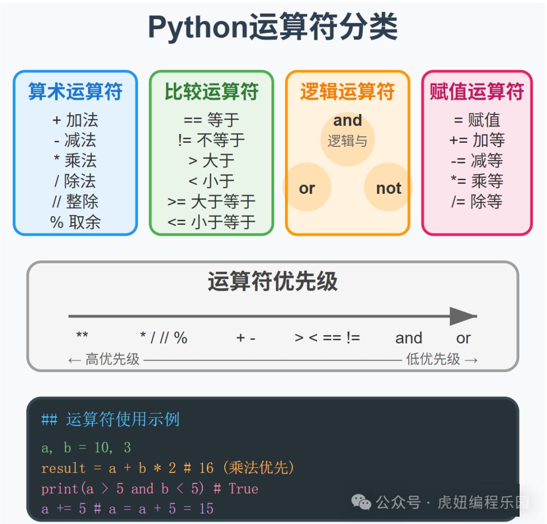 Python中的运算符就像计算器上的按键,帮你做各种计算: