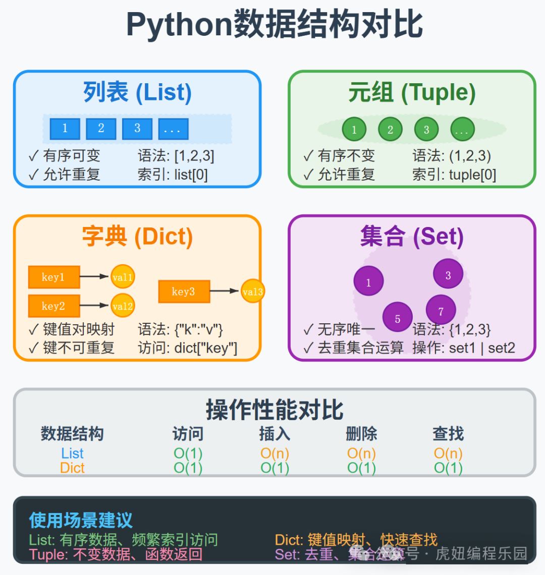 Python提供了几种数据结构,就像不同的收纳工具: