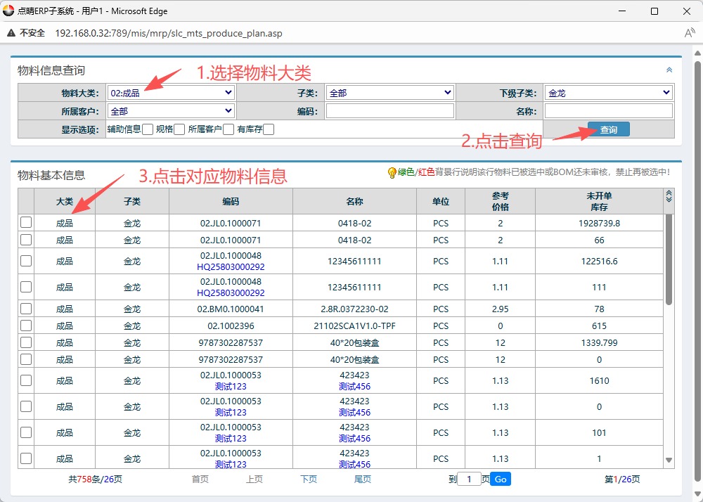 4.选好物料后,按图操作:填写排产量,填写日期,然后点击提交