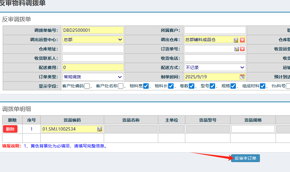 点晴模切ERP-调拨出库单-反审操作