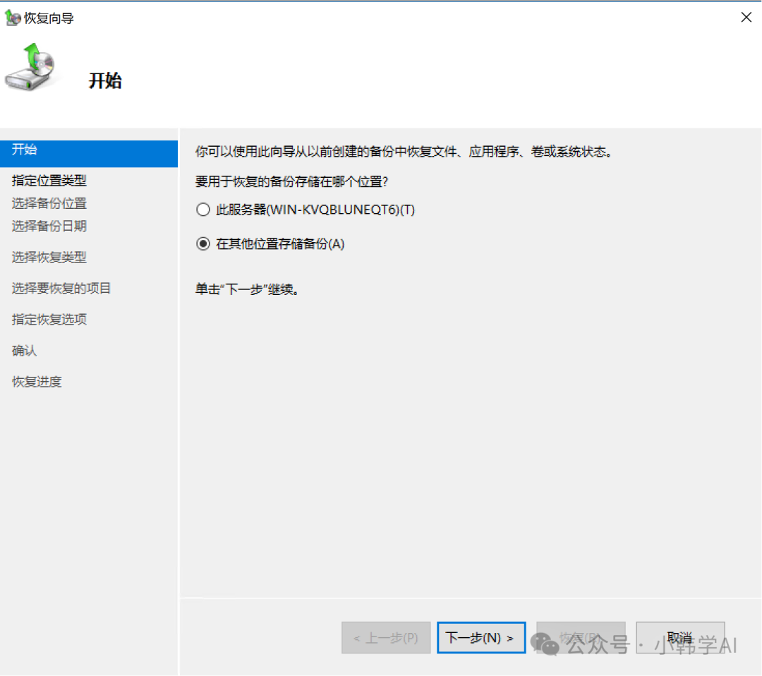 - 本篇文章主要介绍使用windows server backup图形化工具恢复
