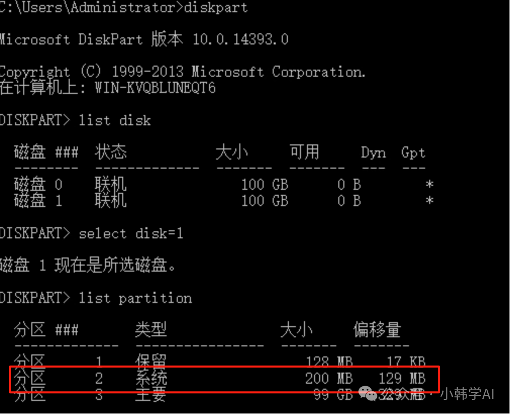 如果恢复目标盘上空盘就需要新建efi分区,D盘并且格式化磁盘diskprt