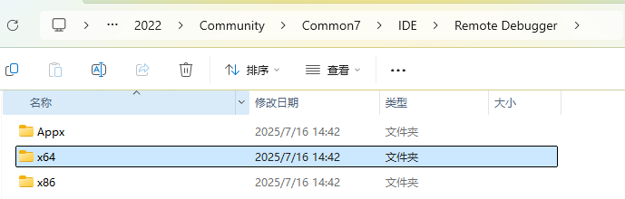本地搜索 msvsmon.exe,选择对应架构的文件夹,将此文件夹拷贝到测试机(或虚拟机)