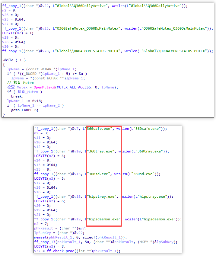 检测互斥体与进程名(源:火绒安全)