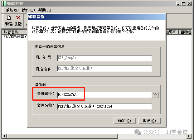 1、金蝶KIS专业版14.0及之前版本的账套备份: