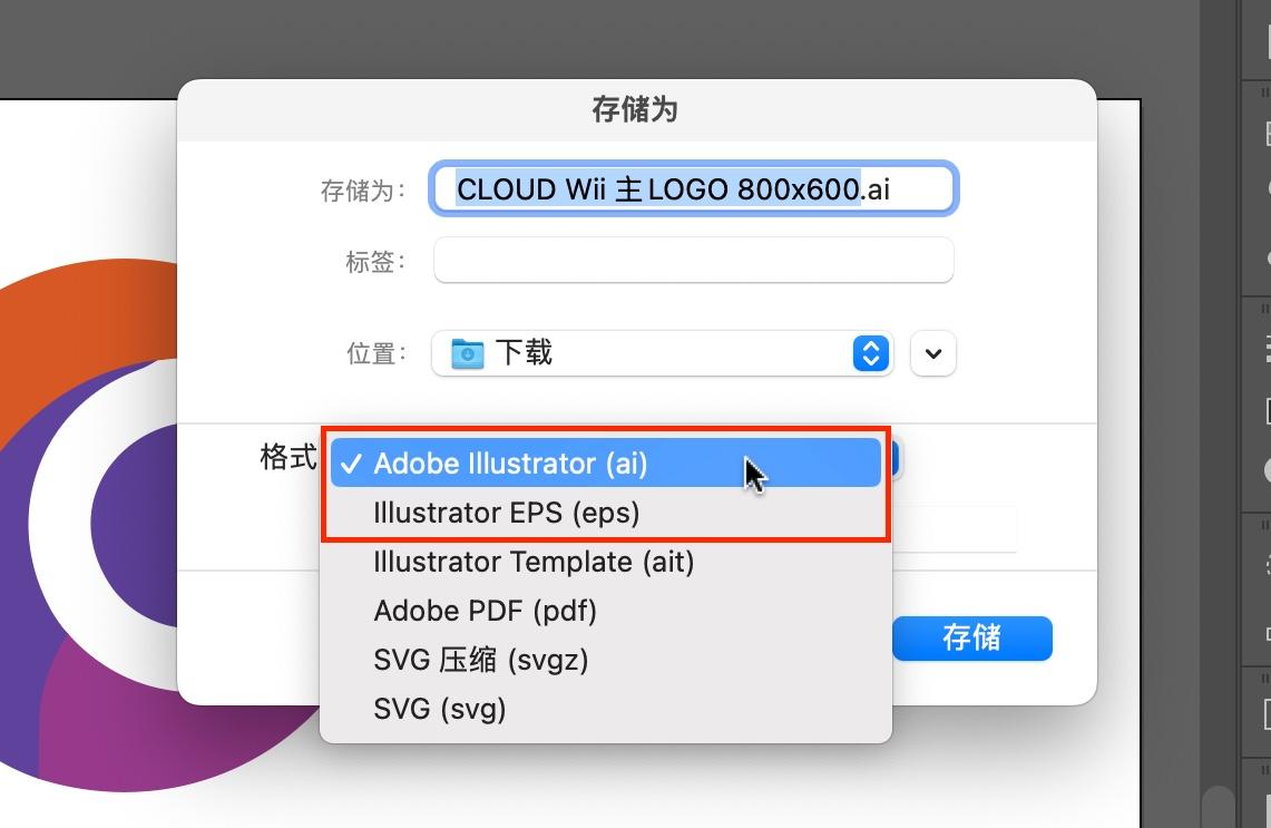 下载安装好Ai后,我们可以将之前转换好的SVG格式文件导入进去,在顶部菜单栏中找到【文件】并选择【存储为】,在导出格式中选择你需要的格式并存储,就完成转换了!