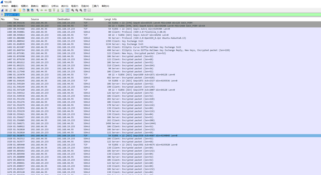 以下基于whireshark抓包工具抓对应的FTP包及SFTP进行分析。