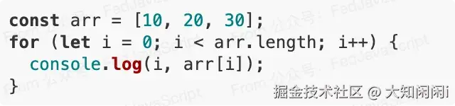 const arr = [10, 20, 30];arr.customProp = "hello";for (let i in arr) {console.log(i, arr[i]); // 会输出 "customProp" "hello"}